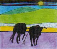 a labrar la tierra con ayuda de bueyes y arado.