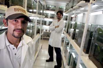 Estos hallazgos, sin embargo, no opacan la preocupación por la declinación de los anfibios. Según Martín Bustamante, investigador del Museo de Zoología de la Pontificia Universidad Católica del Ecuador, persisten las amenazas a las ranas, y por eso ejecutan el proyecto “Balsa de los Sapos”: un impresionante laboratorio en expansión donde se ensaya la reproducción de ranas ecuatorianas en peligro. Bustamante asume con tristeza que hayamos tenido que llegar a esta estrategia, pero sabe que los sapos seguirán desapareciendo y espera encontrar más antes de que se extingan por completo en la naturaleza. En esa dirección, el laboratorio, donde las tres especies de jambatos ocupan terrarios de privilegio, es una valiosa garantía. Aunque de dos especies solo se tienen tres machos (las hembras son escasas por razones aún inexplicadas por los científicos), en el caso del jambato limón fueron avistadas unas pocas hembras en el 2006, que se espera localizar de nuevo para transportarlas al laboratorio e intentar que se reproduzcan con los 12 machos que ya están allí.