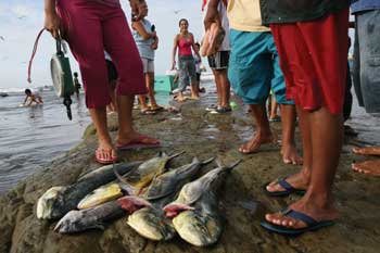 Como le sucedió a Pablo Mendoza, quien recorre la playa El Murciélago, en Manta, ofreciendo agua de coco y tajadas de mango verde. “El mar es un encanto, una hermosura”, dice, tras contarme que hace 12 años dejó las duras y mal pagadas faenas agrícolas para dedicarse, junto con sus hijos, a este negocio. Su familia forma parte de la asociación de tricicleros que vela por la higiene y la oferta justa de ceviches, pastelillos, empanadas, corviches y demás delicias que los bañistas buscan ávidos. Mendoza es una de las 25 mil personas que durante el 2006 trabajaron en las provincias costeras y Galápagos para alojar, alimentar y divertir turistas.