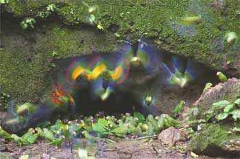 Esta costumbre se ha mantenido durante generaciones en diferentes especies. Tanto que algunos saladeros que eran paredes, y que han sido “activos” durante varios años, ahora son cuevas de algunos metros de profundidad formadas solamente por la intensa actividad animal. Y no solamente los saladeros cambian su estructura: varios metros a su alrededor se puede observar un sinnúmero de senderos, a veces de más de 50 centímetros de profundidad, que han sido utilizados una y otra vez por los animales. Imaginen un tapir correteando varias veces por el mismo camino todos los días: el resultado son estos canales fáciles de diferenciar en el bosque.