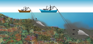 Los camarones, en su etapa adulta, se encuentran en el fondo del mar en donde se alimentan de material orgánico. Para capturarlos, los barcos de arrastre “barren” el suelo marino levantando el sedimento junto con los camarones. El problema es que los camarones no se encuentran solos en las profundidades. Junto a ellos vive una diversa comunidad de especies, desde corales y conchas hasta tortugas y rayas. Las redes de arrastre no discriminan especies y tamaños; todo es levantado, y lo poco que no termina en el saco de la red, queda estropeado o muerto en las profundidades.