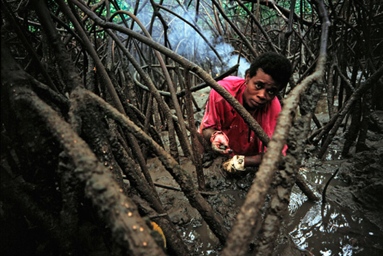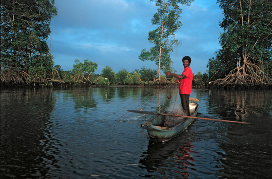 Una hectárea de manglar, me explica Frank Navarrete, de la Coordinadora Nacional para la Defensa del Ecosistema Manglar (C-CODEM), tranquilamente mantiene a unas diez familias de pescadores-recolectores. Esta posibilidad de sustento se repite en las seis principales zonas mangleras del país donde está (o estaba) el 99% del manglar ecuatoriano: Cayapas-Mataje, estuario del río Muisne, estuario del río Cojimíes, estuario del río Chone, golfo de Guayaquil y archipiélago de Jambelí.