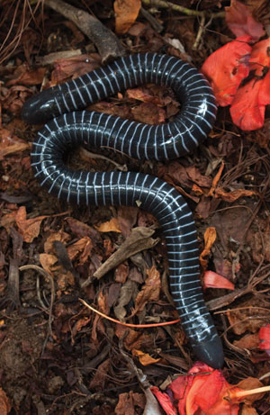 Aunque es común confundirla con una lombriz o un gusano, se trata de un anfibio, prima de los sapos y las salamandras. Vive bajo la tierra, pero también es posible encontrarla entre la hojarasca. Su nombre viene del latín caecum, que significa “ciego”. En realidad, se sabe que sus pequeños ojos, que están cubiertos por una membrana para protegerlos bajo tierra, pueden distinguir cambios de luz.