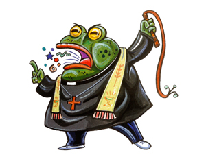 Los sapos clericales son de color negro: se los llamaba jambatos porque abundaban en los páramos andinos. Por efecto de la globalización del comercio, la secularización de las costumbres y la competencia de religiones y misticismos orientales, es una especie en peligro de extinción. Estos sapos entraban en éxtasis y tenían visiones de la Virgen. Organizaban procesiones y croaban al unísono en época de sequías para que Dios mandara lluvia a los campos asolados por la sequía. Cuando la gente se portaba mal echaban sapos y culebras por la boca y enviaban gente al infierno. [Por si acaso estos sapos negros tengan razón, el autor de esta nota científica no detalla algunas sapadas de los sapos clericales.]